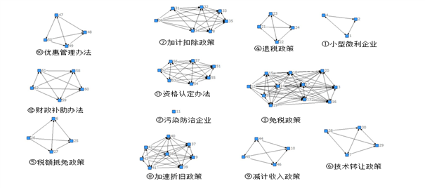 本章以社会网络分析法作为资源综合利用政策工具研究方法,它能既实现对文本内容进行实质性梳理,又可以通过内容可视化的处理,探究在文本内容分析过程中无法体现的问题。因此,本文利用UCINET和ROSTCM社会网络分析软件对资源综合利用政策进行分析,为后续章节的提炼出政策执行制约因素和提出政策优化建议提供参考。