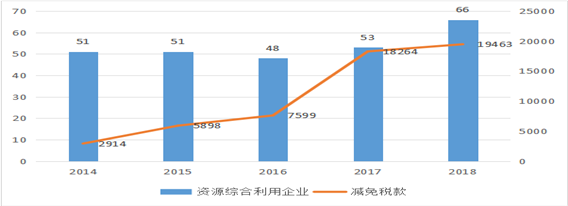 图4-4 资源综合利用企业数量和减免税款情况(2014年-2018年)单位:万元