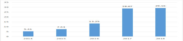 图4-3 清洁能源消费量占总能源消费量比重(2014-2018年)