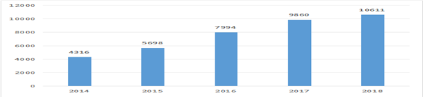 近十年是南平经济高速发展的时期,2008年全市GPD超过500亿元,2013年GDP超过1000亿元,经济和社会发展步入全新的台阶。如下图4-1所示,2014年以来规模以上企业工业产品值实现逐年平稳、高速增长,增长率均超过7%,而资源综合利用业工业产品增加值增长达到88.8%。 2018年,南平市工业总产值达到1893.45亿元,增长1.3%,规模以上企业共有1089家规模以上工业的,分布在36个行业,其中以建筑业、房地产业、制造业以及电力、煤气及水的生产行业为主。