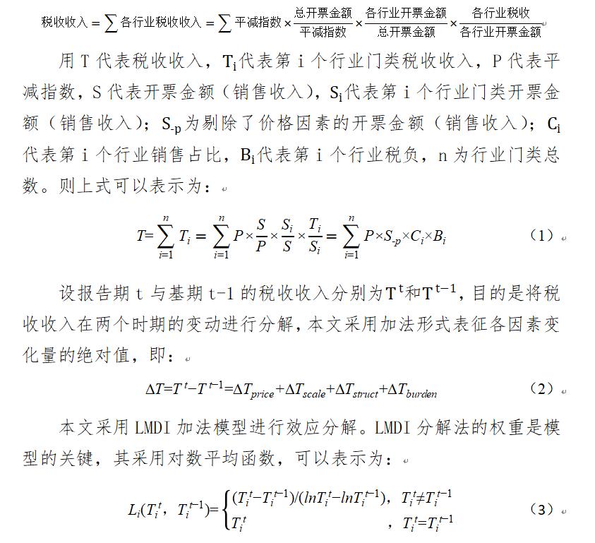 分解分析方法的兴起,源于学术界对复杂社会经济系统动态演变规律的深入研究需求。在现实经济运行中,价格波动、规模扩张、结构升级与税负变动四大因素并非孤立作用,而是通过动态交互形成耦合效应,共同驱动税收收入的时序变动。为量化分离各因素对税收收入变动的动态贡献及其交互关系,需要引入能够精准解构多因素驱动机制的分析工具。