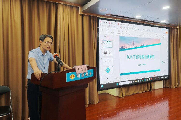 7月10日,明溪县局举办2024年度税收科研交流会,邀请三明市税务学会会长池生清指导授课,旨在提升青年干部的税收科研论文写作水平。