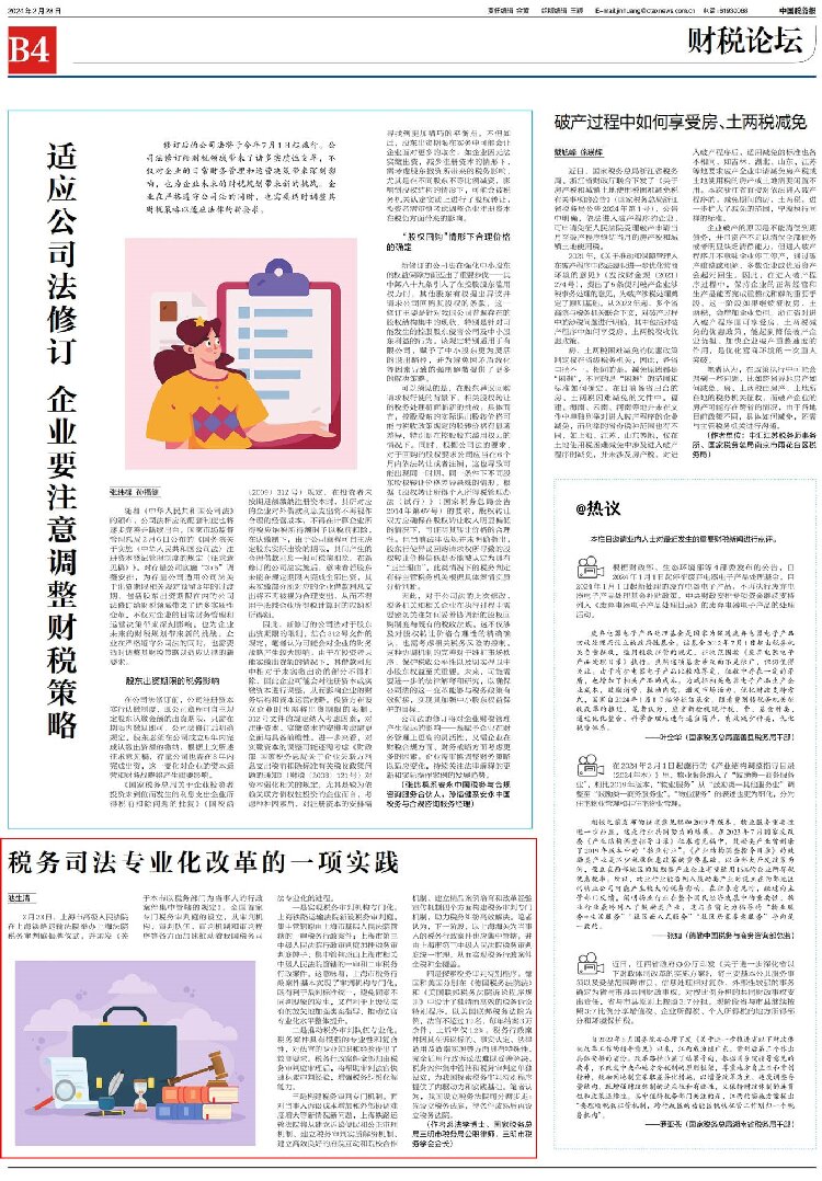 2月23日,上海市高级人民法院在上海铁路运输法院举办上海法院税务审判庭揭牌仪式,并印发《关于本市以税务部门为当事人的行政案件集中管辖的规定》。全国首家专门税务审判庭的设立,从审判机构、审判队伍、审判机制和审判程序等各方面加速推动着我国税务司法专业化的进程。